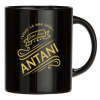 Microwavable and certified food-grade black ceramic mug packed in a box with a side window.